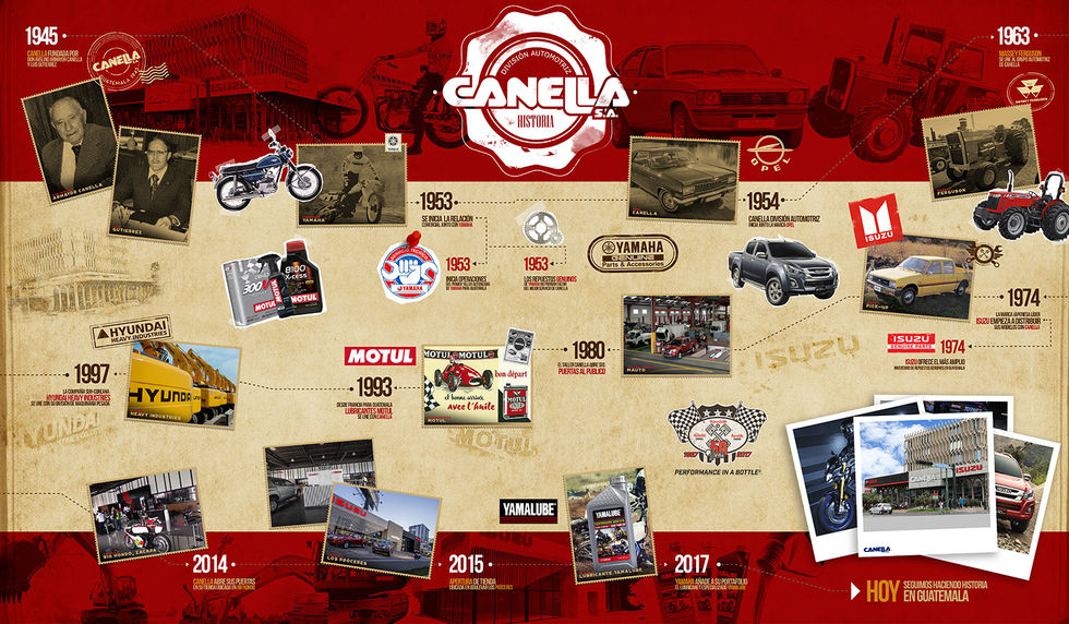 En los esfuerzos de Canella S.A. para promover valores e historia acerca de la empresa se me encargo realizar un mural en donde se mostraría la cronología del crecimiento y desarrollo a través de los años. Desde su fundación hasta tiempos modernos. Este se encuentra ubicado en la agencia central de Canella en la zona 4 de la ciudad capital.